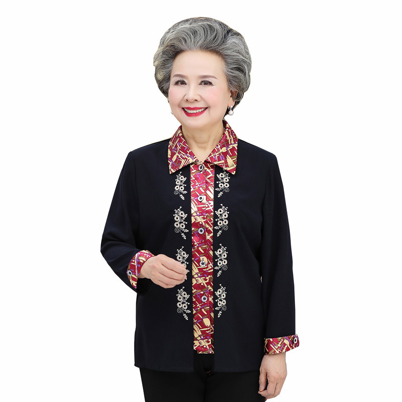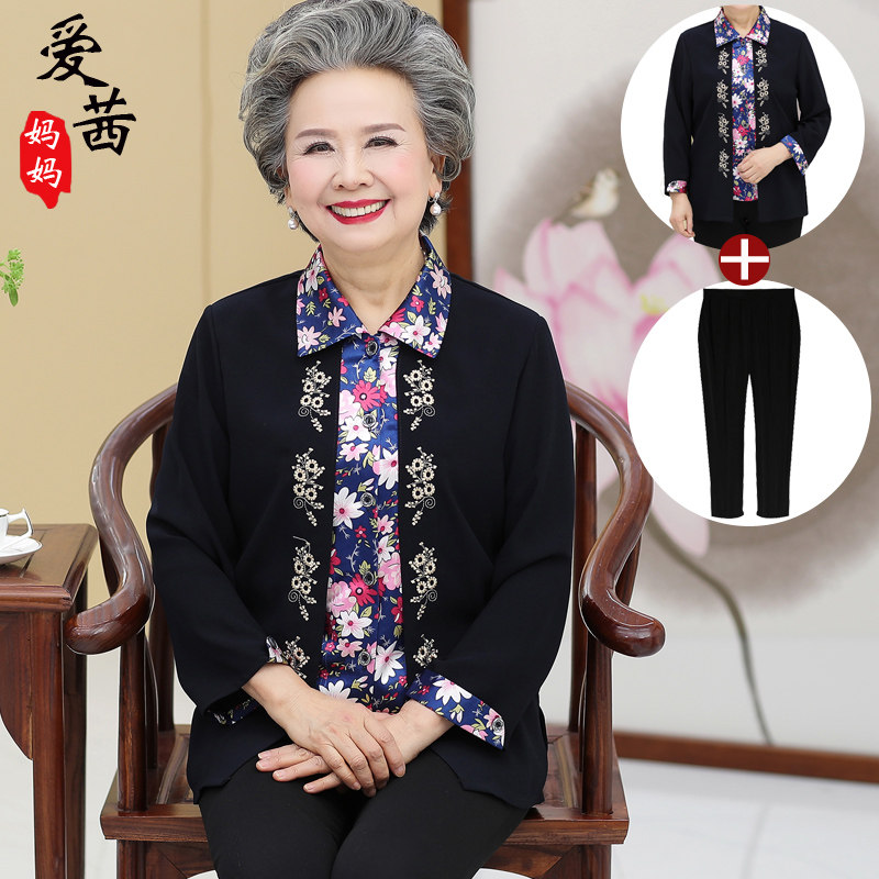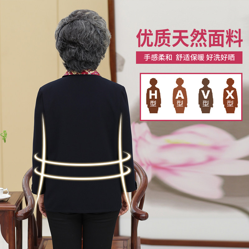 Middle-aged and elderly women's clothes autumn clothing thin jacket Mom Spring and autumn shirt 80-year-old grandma Dang Costume Fake two-piece cardio-hoodie