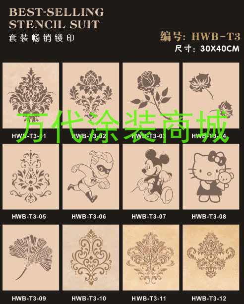 Hollow printing mold liquid wallpaper granular paint printing template feather diatom mud art coating construction tool