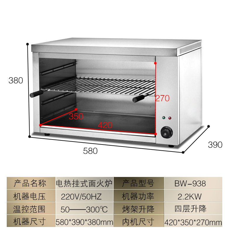 Electric hot oven wall-mounted electric hot lifting face stove bottom fire oven electric barbecue grill Western-style pasta oven