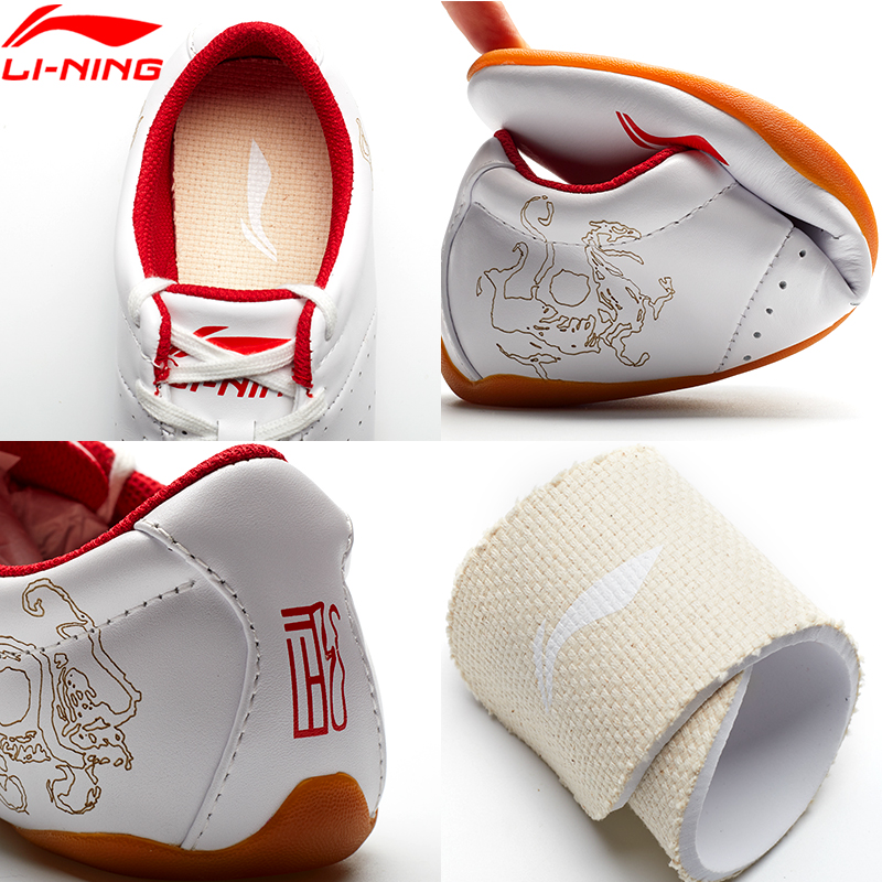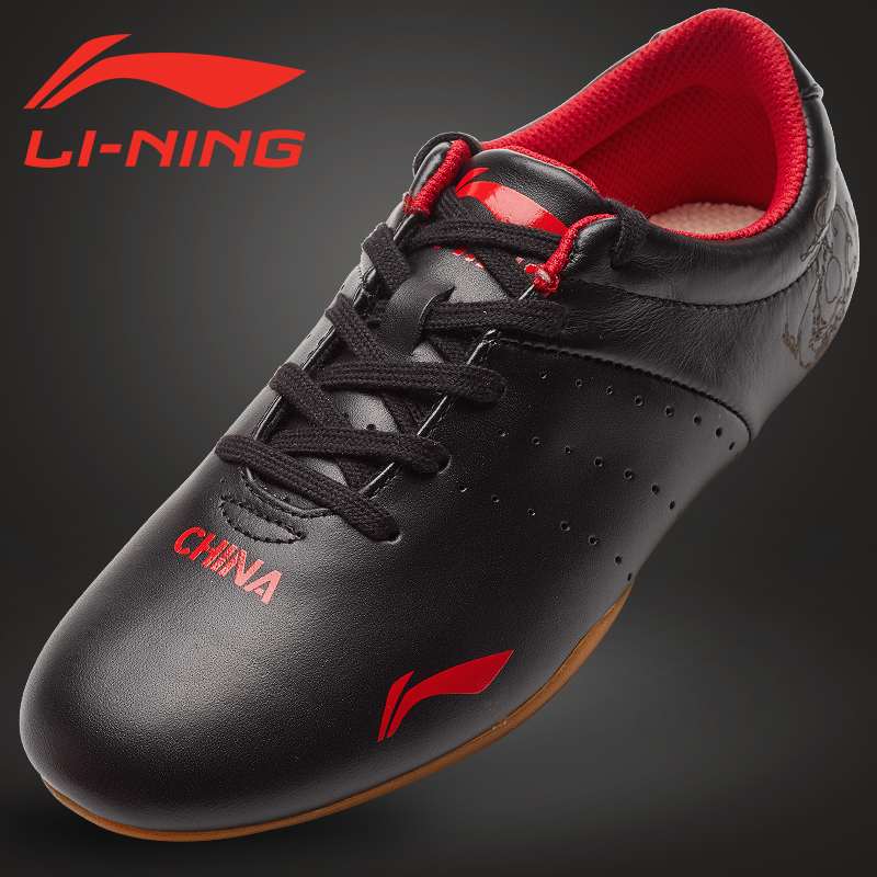 Li Ning Tai Chi Shoes Woman Winter Head Layer Cow Leather Martial Arts Shoes Taijiquan Style Shoes Men's Tai Chi Sports Shoes Competitive Shoes