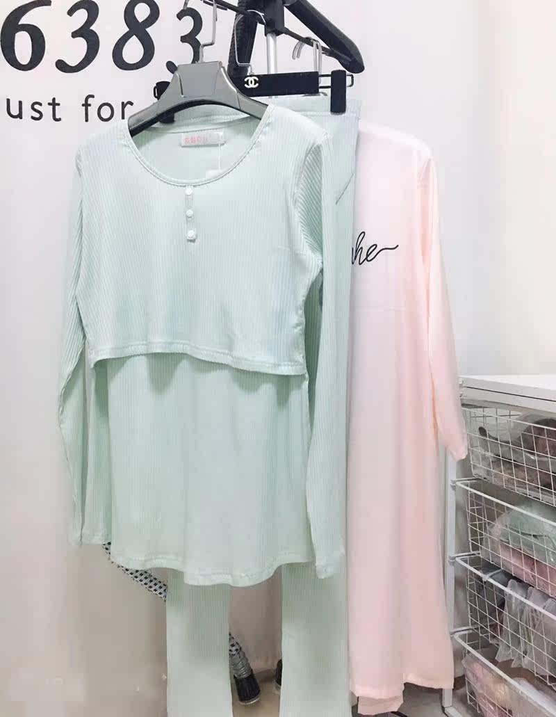 Pure cotton pit strip pregnant women pajamas home clothes confinement clothes nursing clothes set