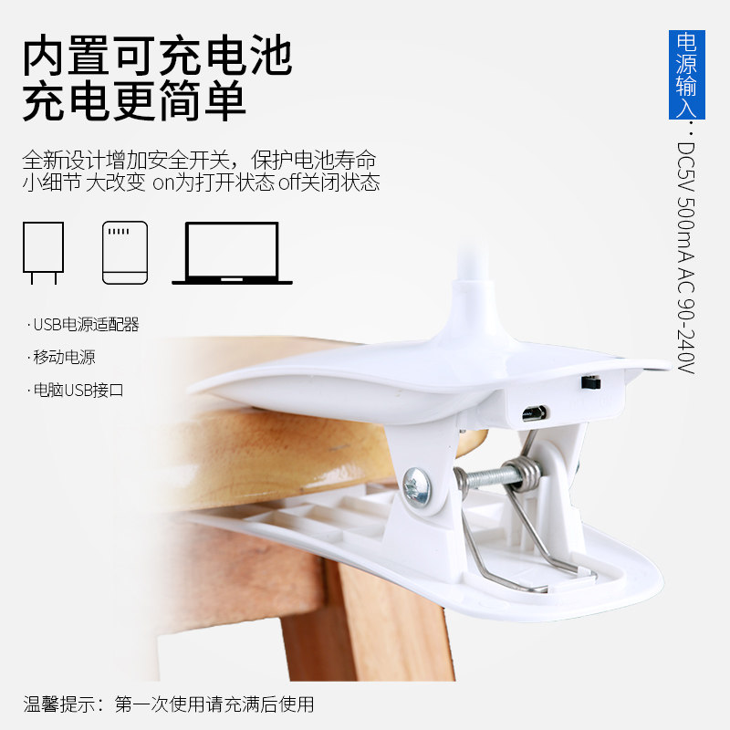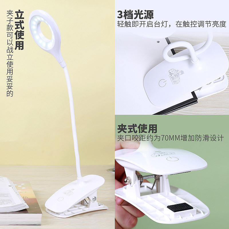 led rechargeable clip-on small table lamp dormitory study bedroom bedside eye protection mini spectrum stand lamp usb lamp night lamp