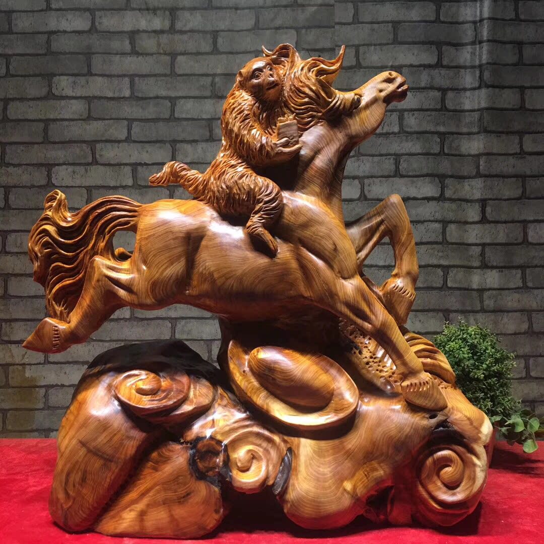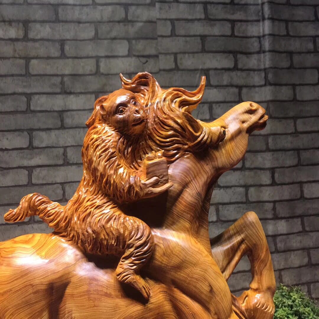Root carving root art swing piece Jungma monkey cliff Berger old stock No splicing allegory Good delivery Gift Home Office Craft Gift Hem