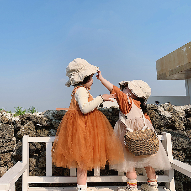 Youyou girls 2021 spring new little fairy dress Wild children baby suspender lace skirt princess skirt