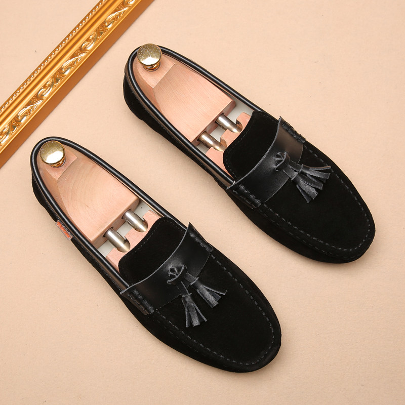 2022 new beanie shoes men's leather British frosted casual men's shoes Korean version of the tassel lazy soft bottom non-slip tide shoes