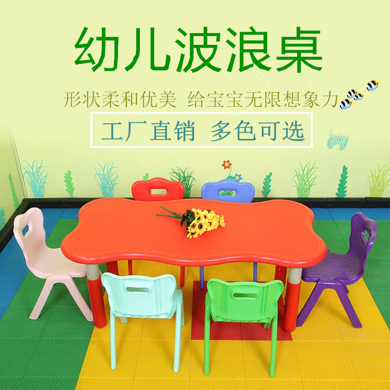Children's plastic wave table kindergarten early education center can lift learning game thick table and chair set special