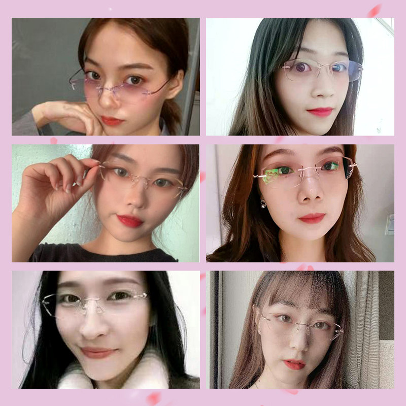 Nearsightedness Glasses Female Eye Frames Women Pure Titanium Cut Sides Without Frame Mesh Red vegan with glasses with degree of myopia