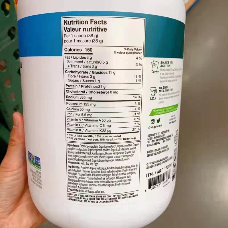 Canada Vega green plant protein powder healthy nutrition meal replacement powder vanilla flavor 1kg