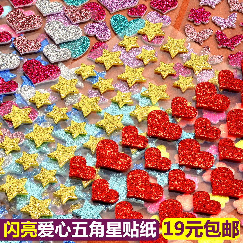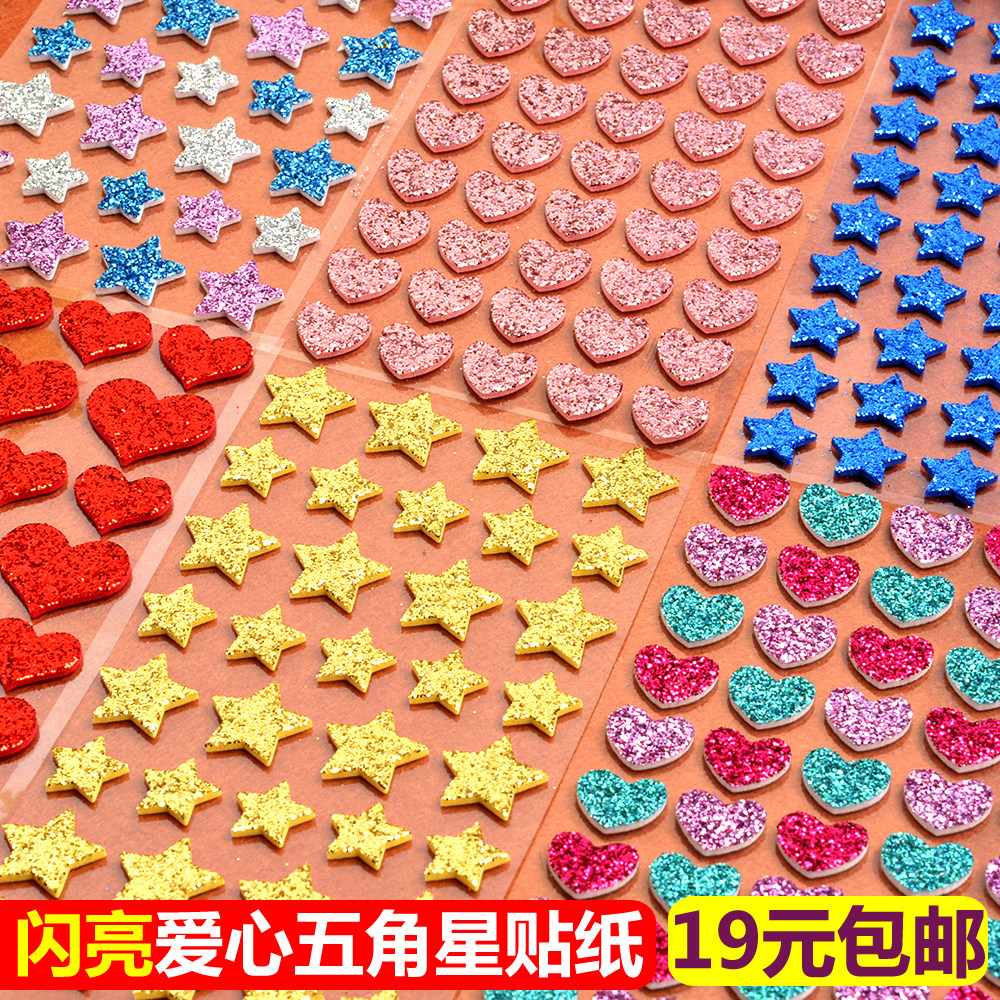 Children Stickers Golden Silver Color Loving Stars Pentagram Solid 3D Bubble Glued phone Decorative Reward Slime Painting