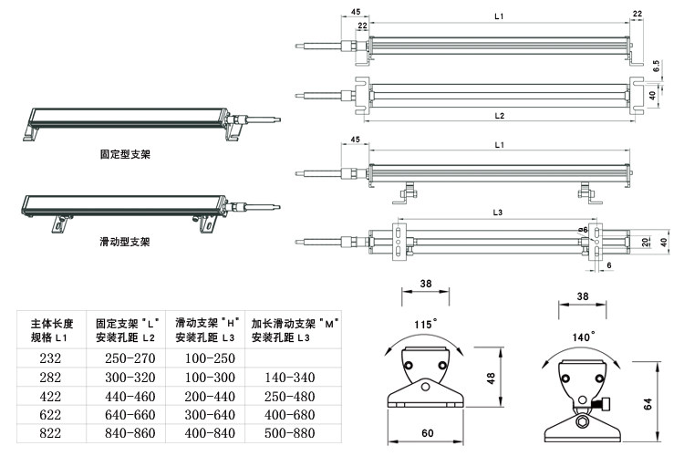 8W 8W 24V Total length 282mm12W 24V Total length 422mm16W 622mm20W 24V 24V Total length 822mm8