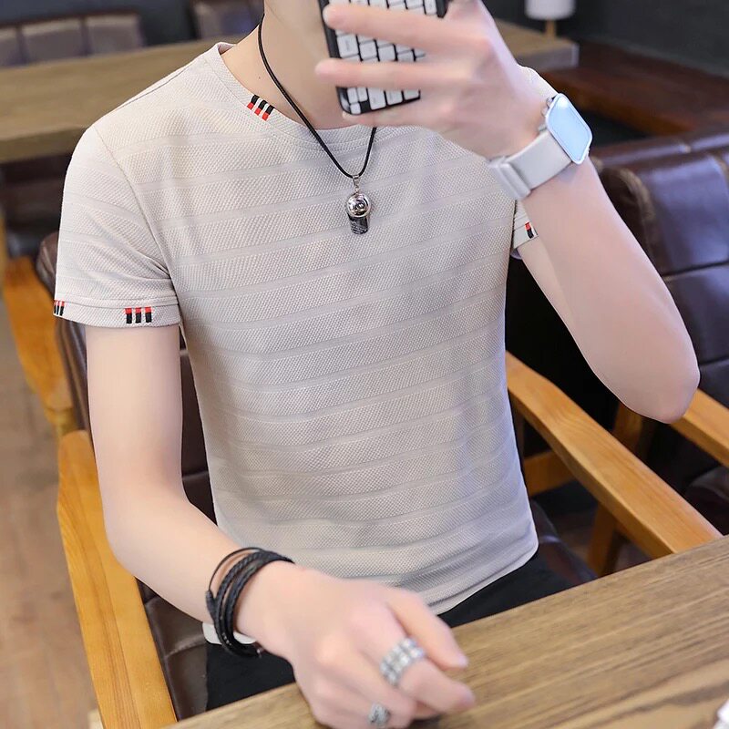 Pie-shirt men's short-sleeved t-shirt self-cultivation trend Korean version 2022 new all-match personality pure cotton white thin T-shirt