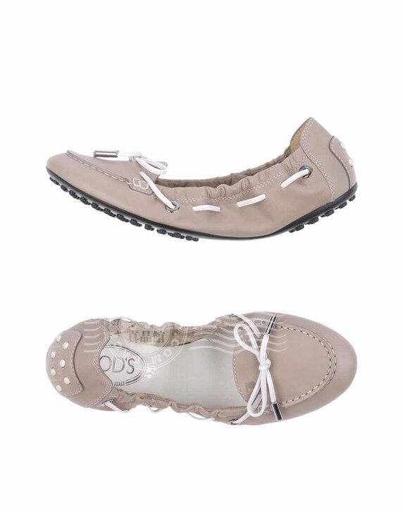 American Tods women's leather light gray curved bottom peas shoes US5 simple and comfortable bow 35 spot