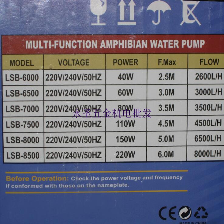 LSB-7500-8000-8500 Plastic submersible submersible fish tank AQUARIUM AERATOR Fountain Amphibious water pump
