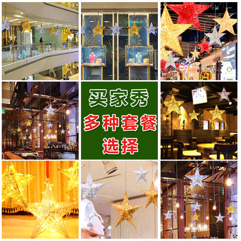 Christmas Decorations Iron Art Solid Gold Stars Hung Decoration Shop Suspended Ceiling Roof Shop Window Arrangement Hanging Pentagram