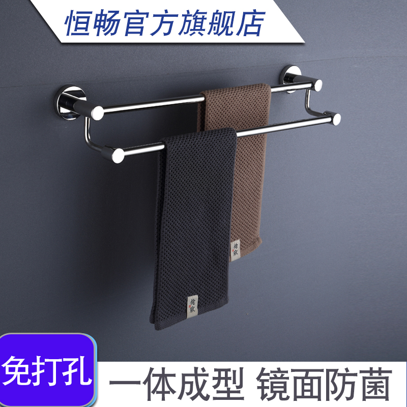 Punch-free 304 stainless steel bathroom thickened towel bar lengthened toilet hanging towel rack powder room hanging rod double rod