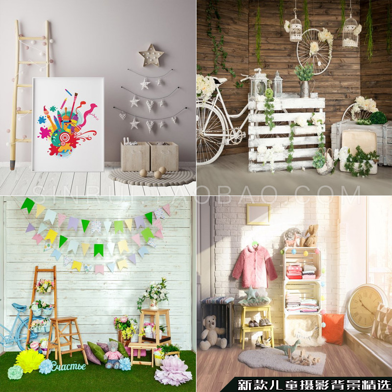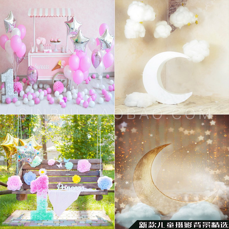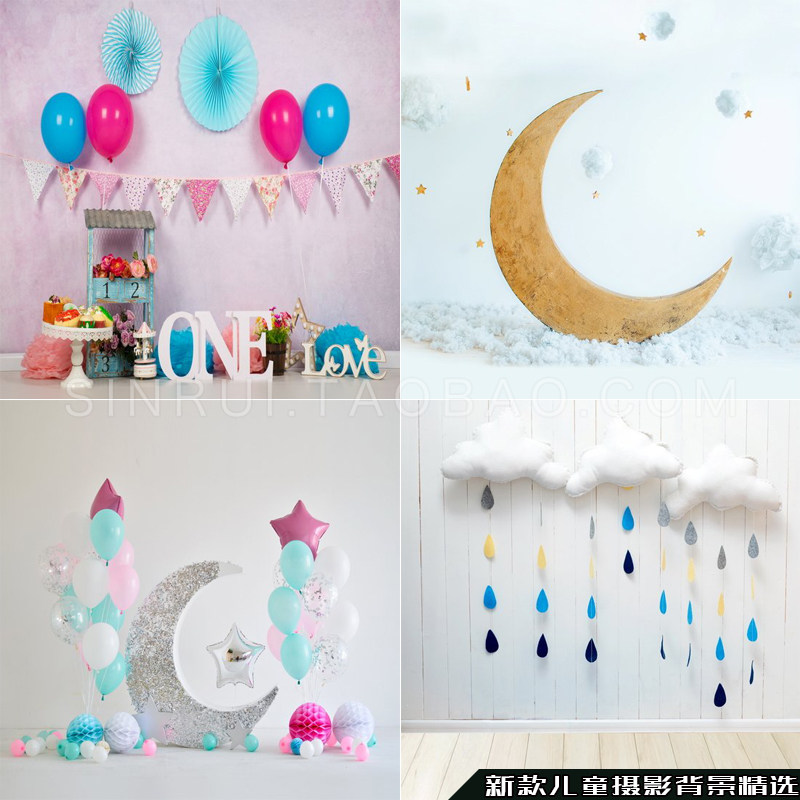 Photo studio children's photography background cloth European and American cartoon ventilation 100th birthday theme simple indoor photo background