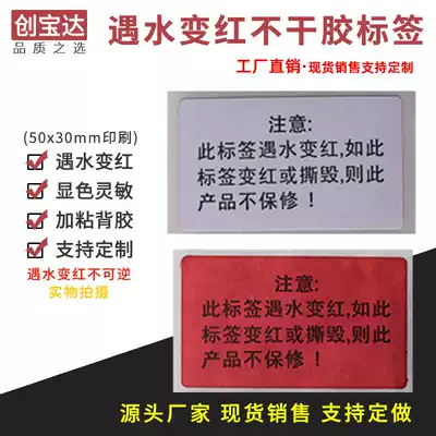 In case of water turns red label 50x30 Printing 50 stickers electronic waterproof label Lithium battery warranty label Chuangbaoda turns red in case of water Self-adhesive label