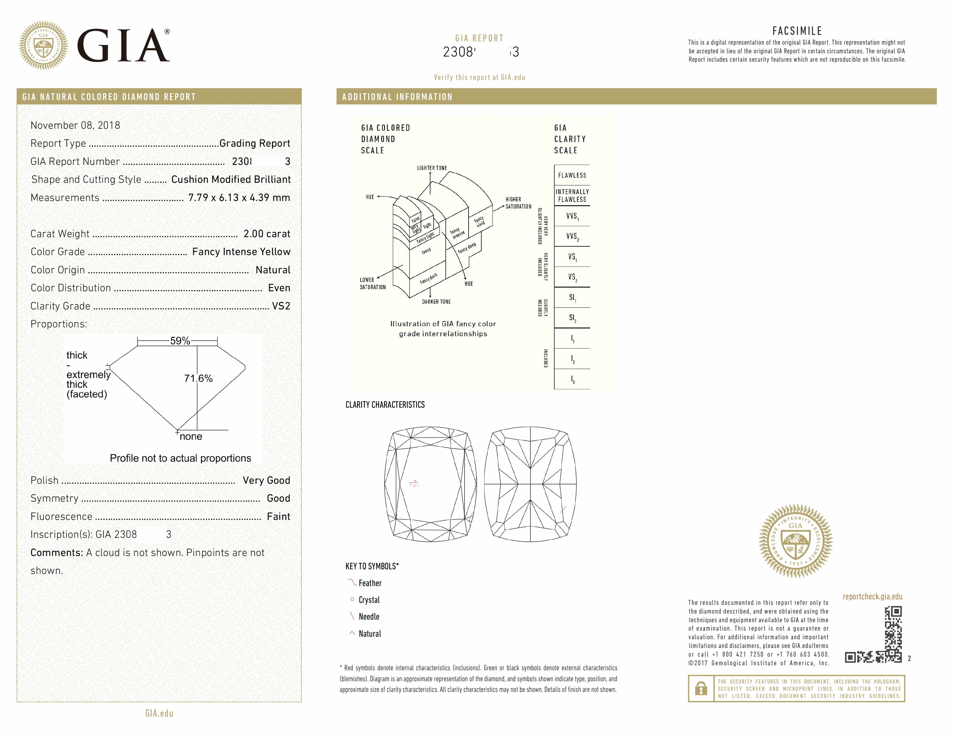 Color drill Yellow Diamond cushion Type 2 Clay FancyIntense Yellow color Yellow vs2 net degree GIA certificate-Taobao
