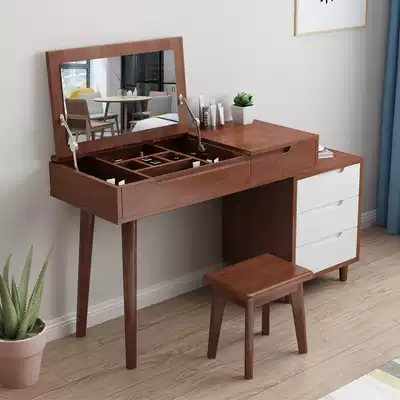 Dressing table Bedroom solid wood Nordic dressing table Modern minimalist ins net celebrity clamshell dressing table multifunctional small