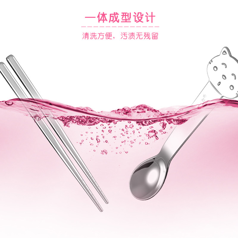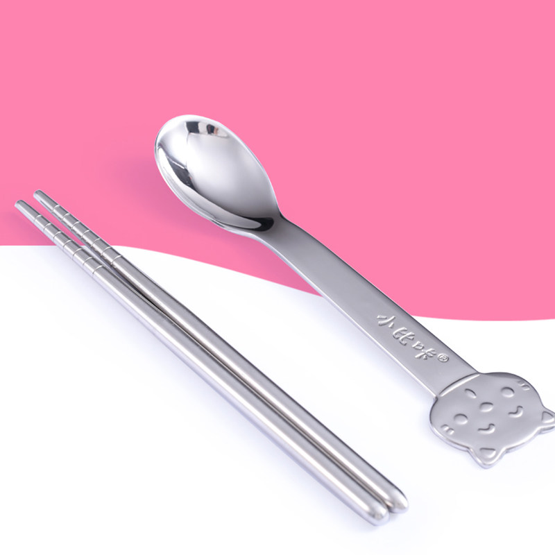 Small Bikha Children Cutlery Stainless Steel Spoon Chopsticks Combined Baby Practice Chopsticks Baby Eating Spoon Training Chopsticks