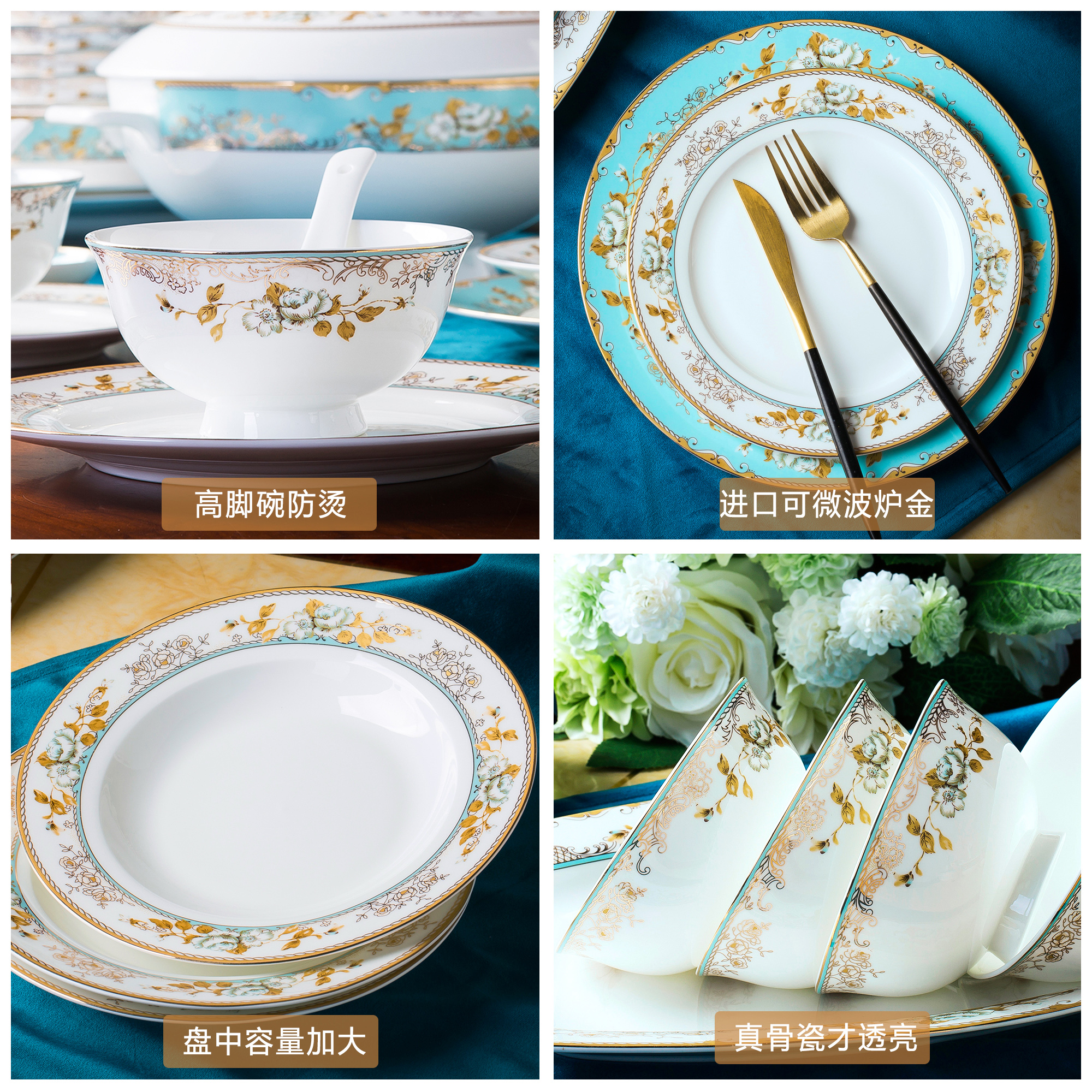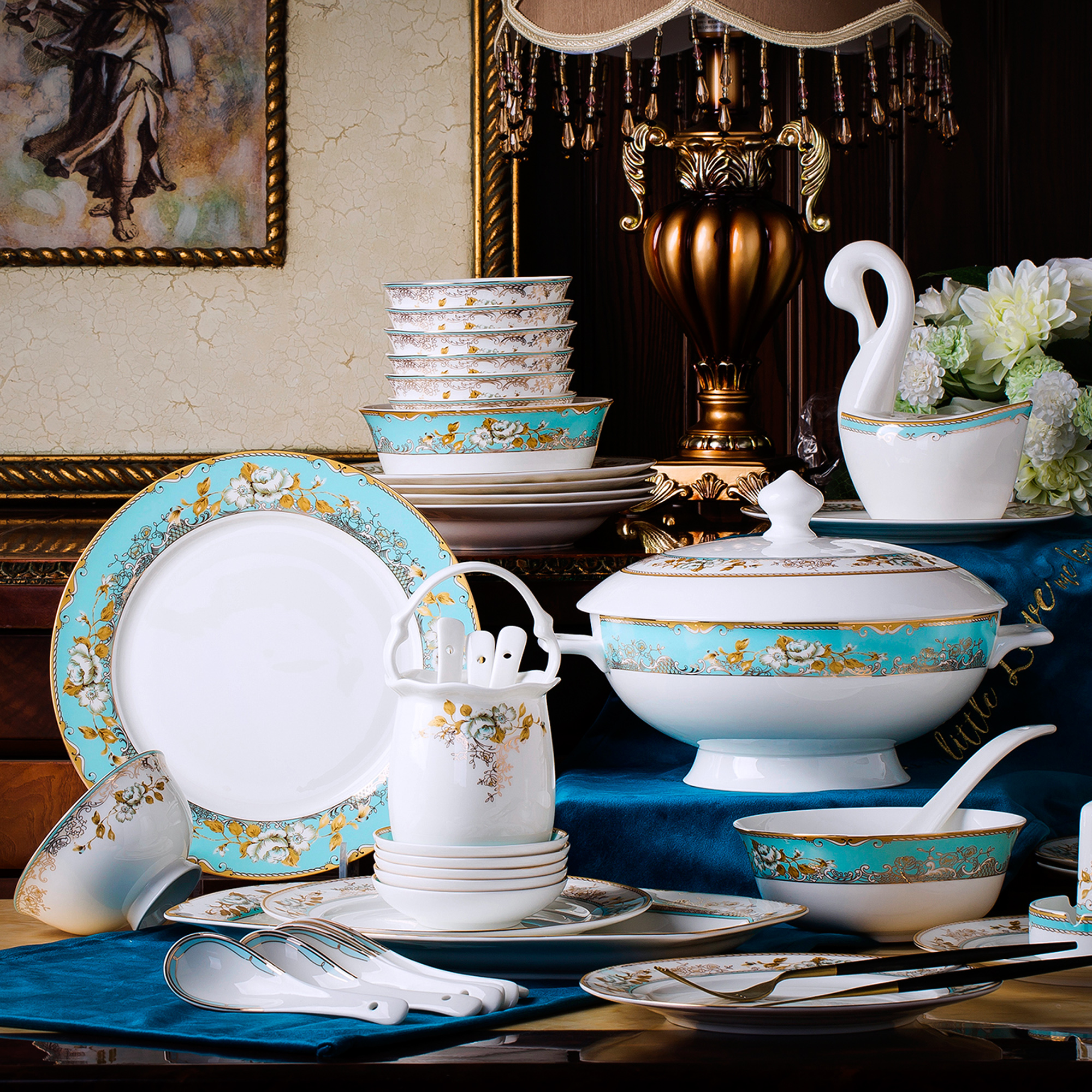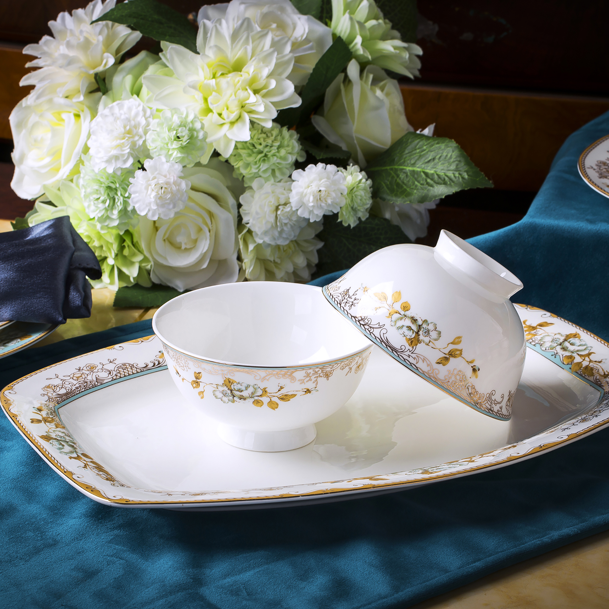 Dish set Household combination European Jingdezhen bone China tableware dishes dishes and chopsticks Simple dinner ceramic bowls and plates