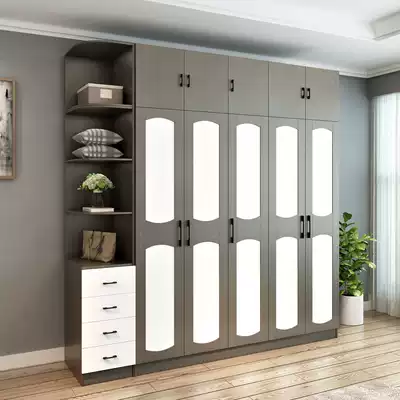 Nordic wardrobe simple modern economy assembly bedroom cabinet solid wood overall combination 2345 door wardrobe