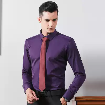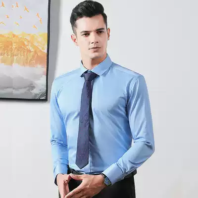 Men's shirt Slim-fit solid-color shirt Business casual ironing-free professional white inch shirt Men's long-sleeved formal Korean jacket