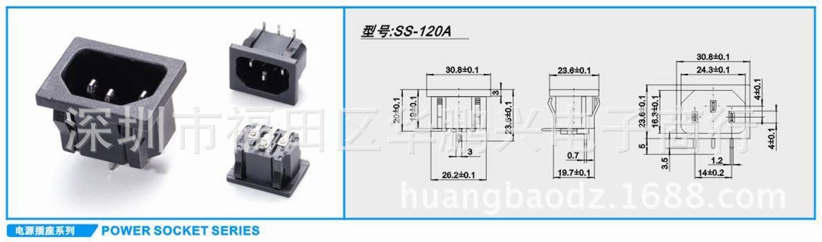 AC power socket single-row three-legged 90-degree angled plug-in plug-in pin