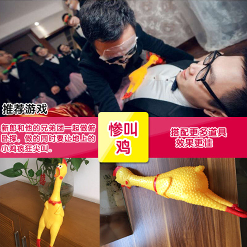 Screaming chicken for kissing, 1 whole person blocking the door, getting married, tricking the groom, spoofing acupressure board, wedding blocking props