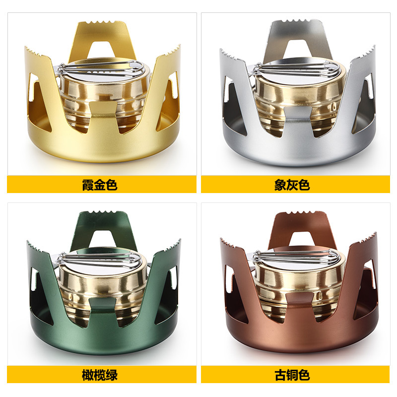 Outdoor portable boiled tea alcohol stove windproof burning with wild cooking camp solid stove Ethanol Survival Simple Field Furnace