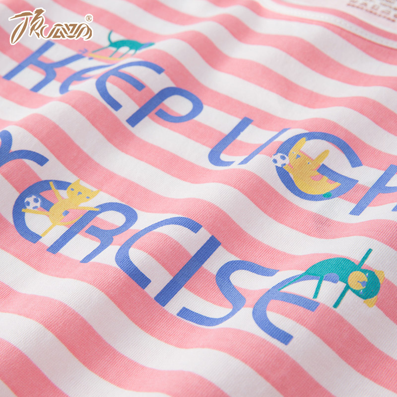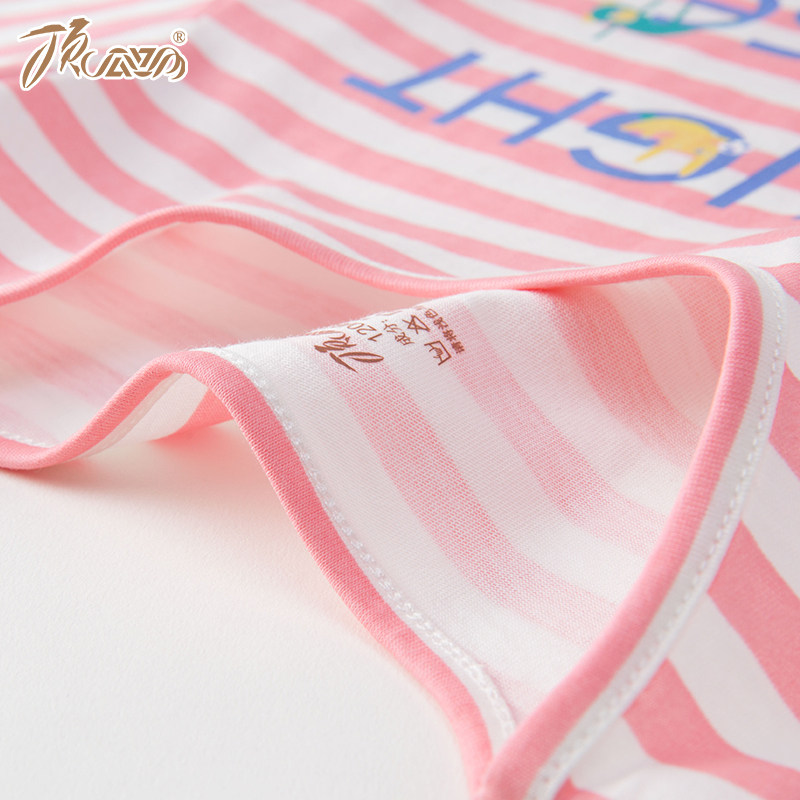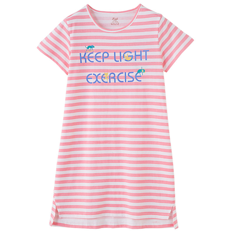 Top melon melon 2019 summer girls' nightdress children's pajamas short-sleeved cotton striped girl baby middle and big children parent-child