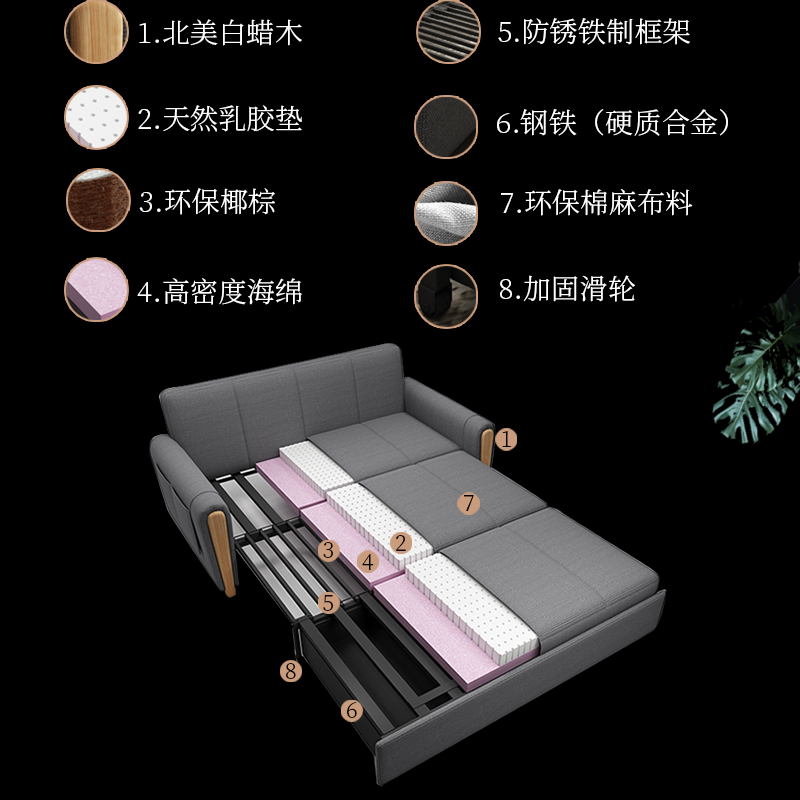 Japanese-style extremely simple multi-functional foldable storage technology cloth sofa bed small apartment living room double sitting and sleeping