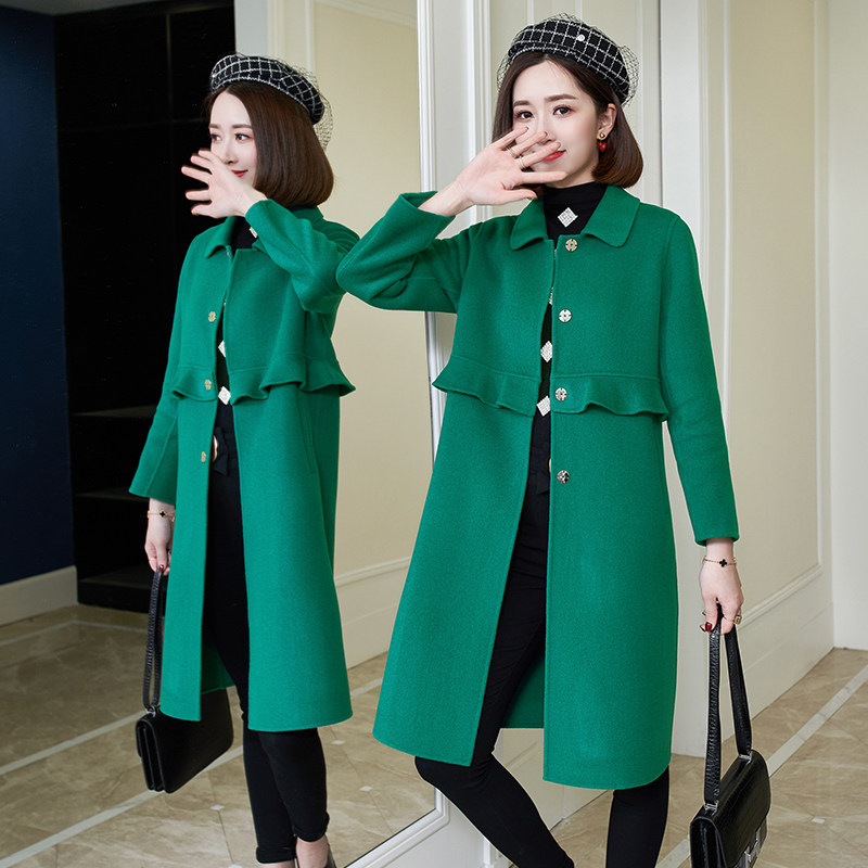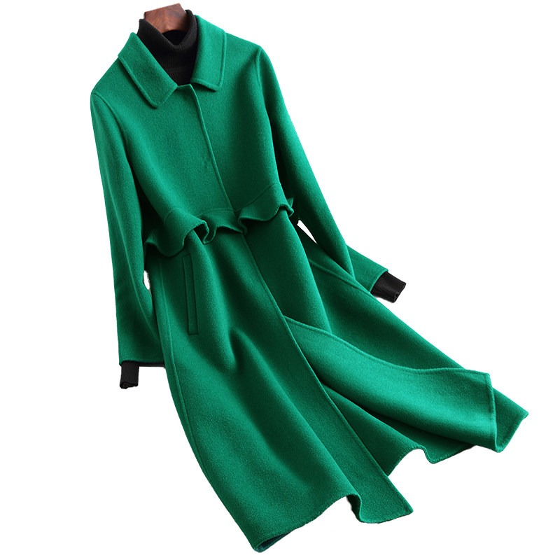 Fall/Winter 2021 new double-sided cashmere coat women's mid-length ruffled green wool wool wool wool coat