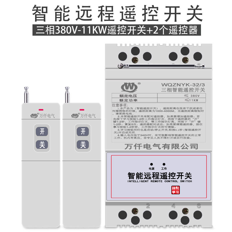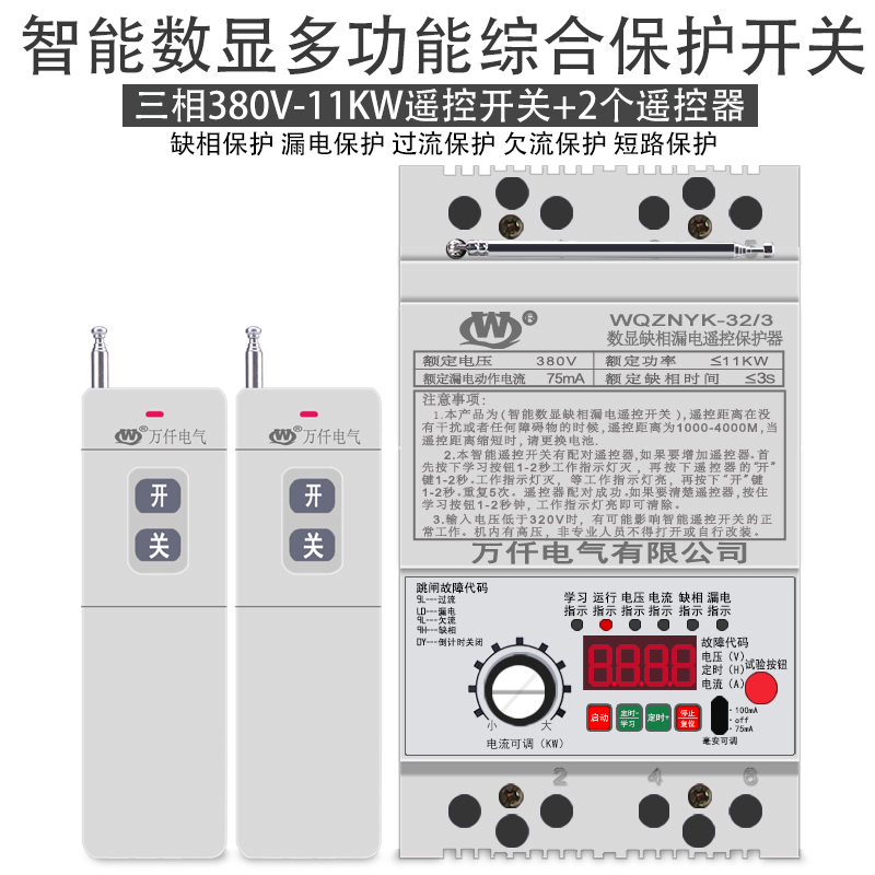 Wanqian intelligent remote control switch Water pump motor phase leakage protection switch 3000 meters two remote controls