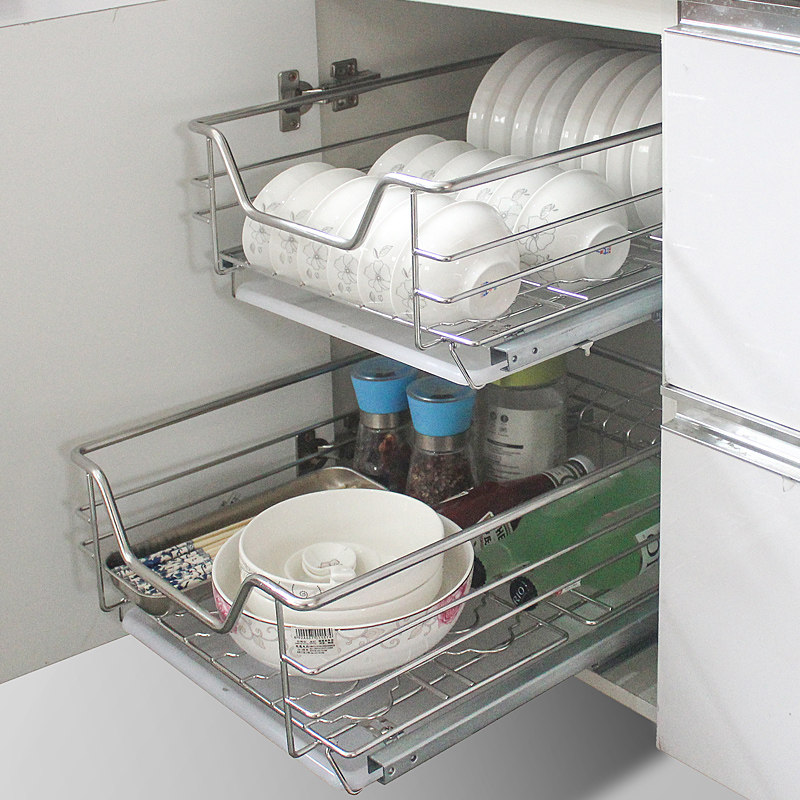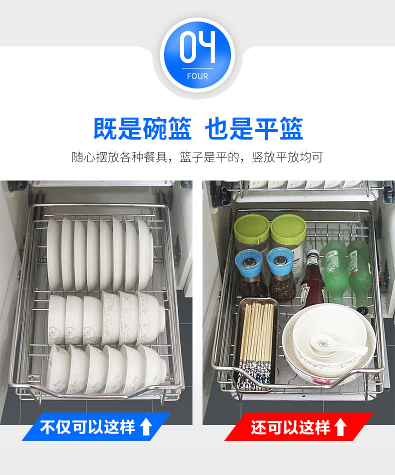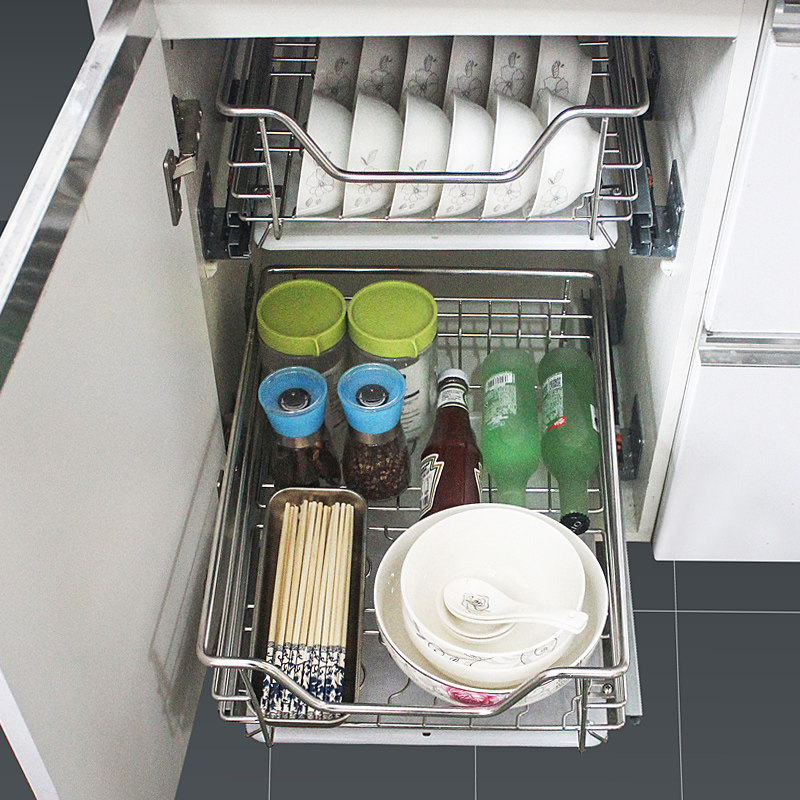 304 stainless steel small size bowl dish basket Lanlan kitchen overall cabinet seasoning basket drawer open door damping rail