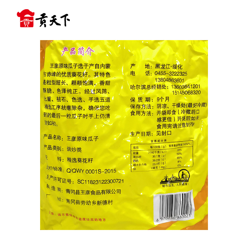 Northeast Qinggang Wang Yan original melon seeds 2 bags of cooked large melon seeds, sunflower seeds, new melon seeds, fried nuts and snacks