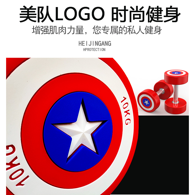 High-grade dumbbell Captain America PU fixed dumbbell suit Commercial private teaching gym round head dumbbell men's fitness