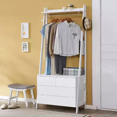 Home Yi solid wood coat rack floor hanger bedroom clothes rack household simple modern hanger with cabinet clothes shelf