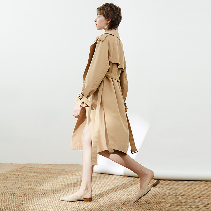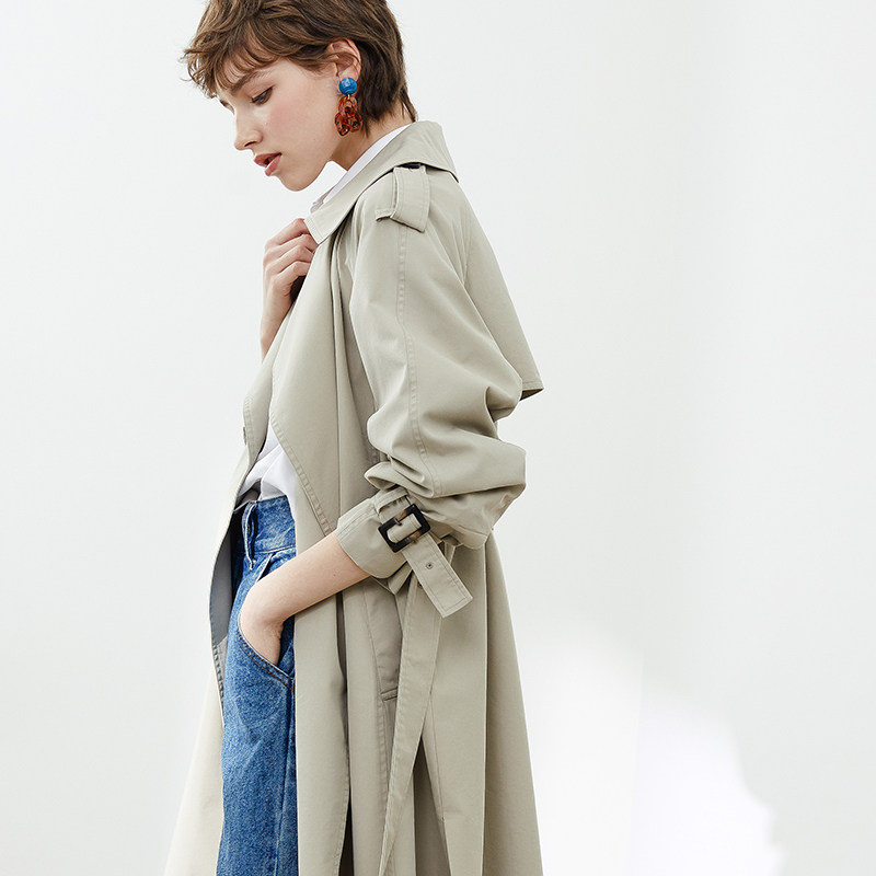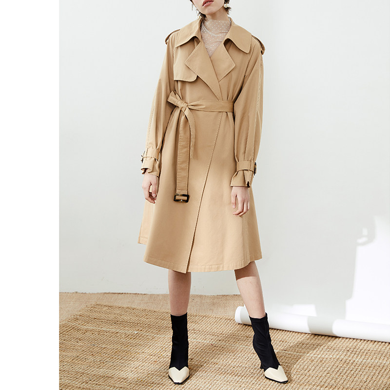 O'Kelly classic return to the gas field type tie belt loose windbreaker jacket over the knee in the long version of the Korean version of the female early spring