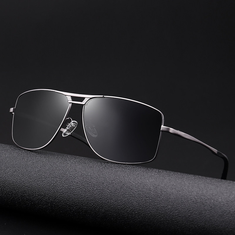 Day and night Dual-use discoloration polarized sunglasses male night vision glasses driving special driver driving mirror square sunglasses tide