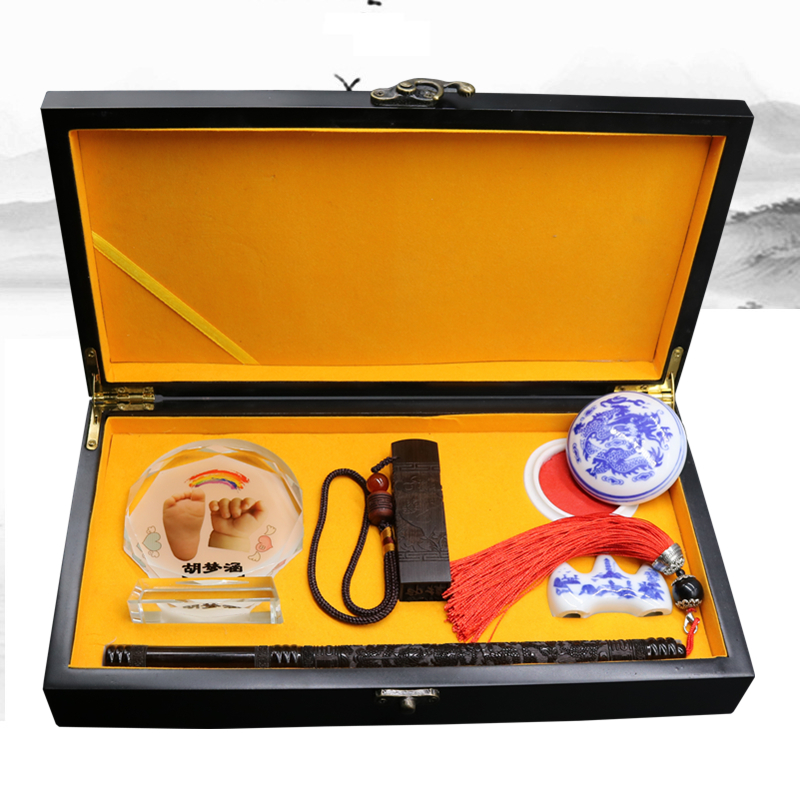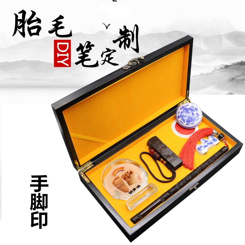 Fetal brush DIY self-made solid wood gift box 5 pieces set umbilical cord chapter fetal hair custom baby souvenirs made at home