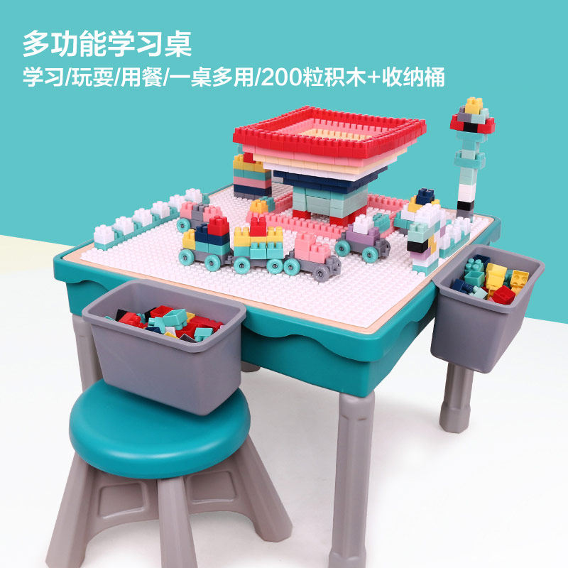 (Mingta) high quality table + chair + building block bottom plate +200 large particle building blocks