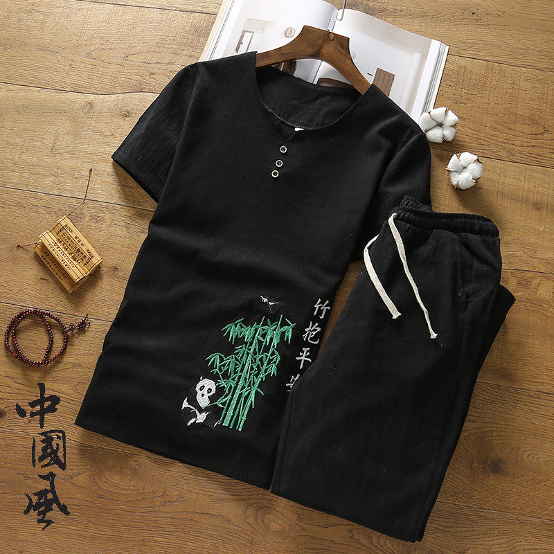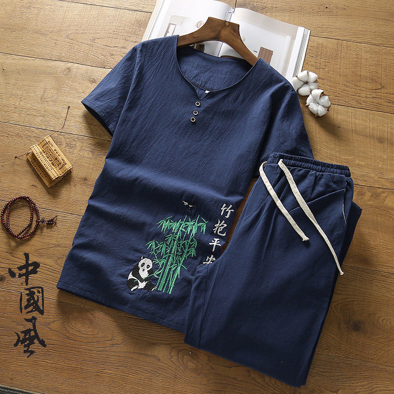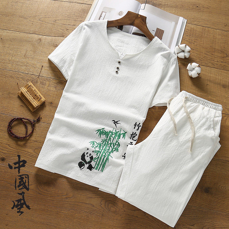 Youth summer new fashion collocation men's summer clothes 2021 suit earth shirt fat man Hanfu pajamas men's summer fashion trend