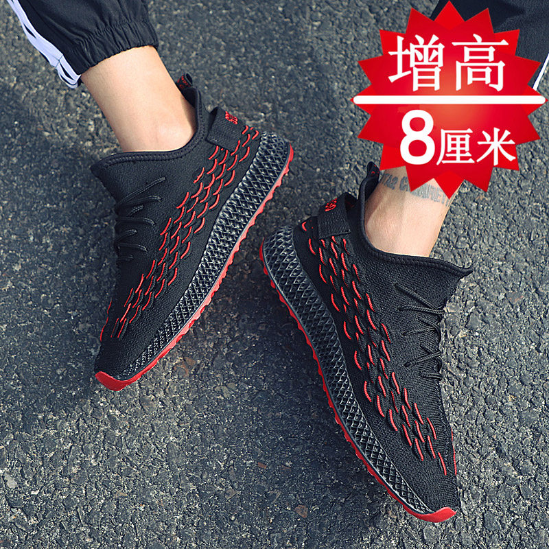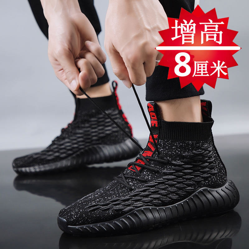 Trend Net Face Men Heightening Shoes 8cm Inner Heightening Flying Weaveshoe Men 8CM Han Edition Heightening Board Shoes Casual Sneakers
