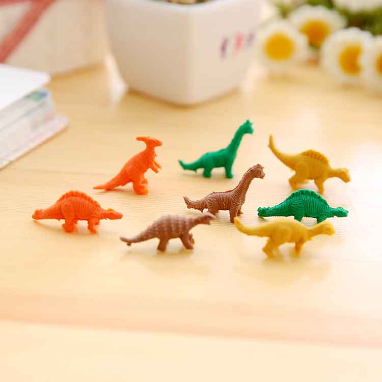 Dinosaur eggs (containing seven small dinosaurs)Bottle eraser (about 20 tablets) Reward eraser (a bag of 4) Train eraser(single price) Car eraser (single price)Lipstick eraser