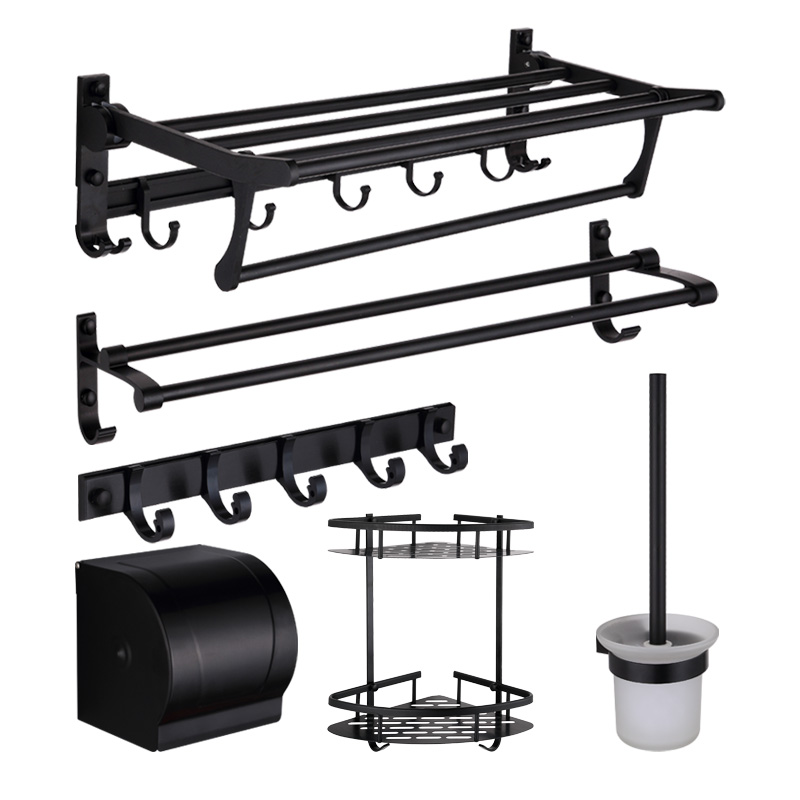 Space Aluminum Event Hook Space Aluminum Thickened Toilet Brush Space Aluminum Waterproof Paper Towel Box Space Aluminum Towel Double Pole Space Aluminum Plus High Triangle Basket Space Aluminum Folding Bath Towel Rack Three sets (bath towels)