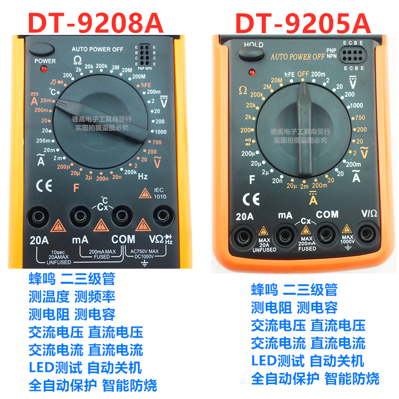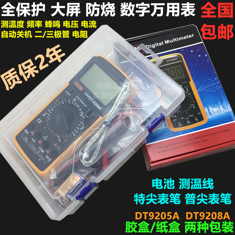 DT9205 digital universal meter 9208 digital display universal meter temperature measurement and anti-burning automatic shutdown capacitor resistance voltmeter