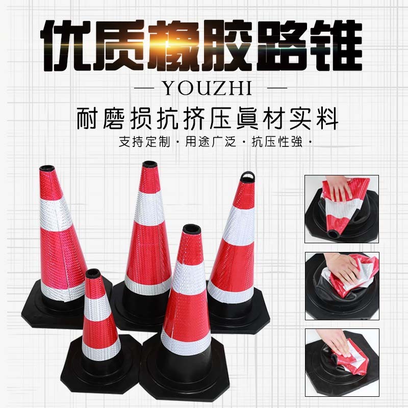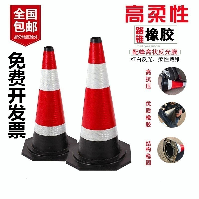 Rubber road cone 70cm reflective cone Roadblock cone 50cm Ice cream cone cone bucket Warning column Safety cone Traffic facilities