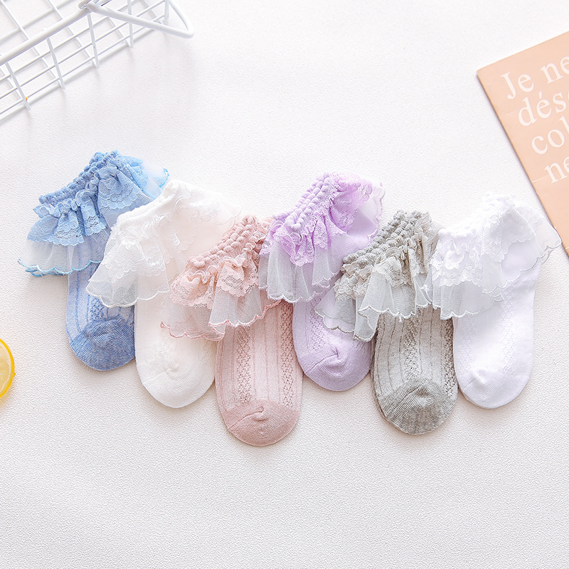 Spring Summer Money Girl Flowers Side Socks Cotton Autumn Children Socks Students Princess Socks 3-5-7-9 Year Old Baby Lace Socks