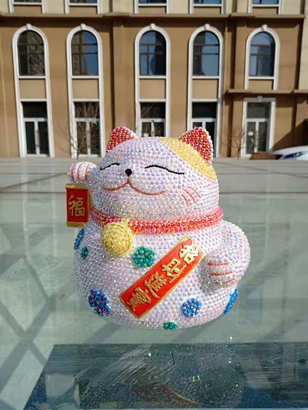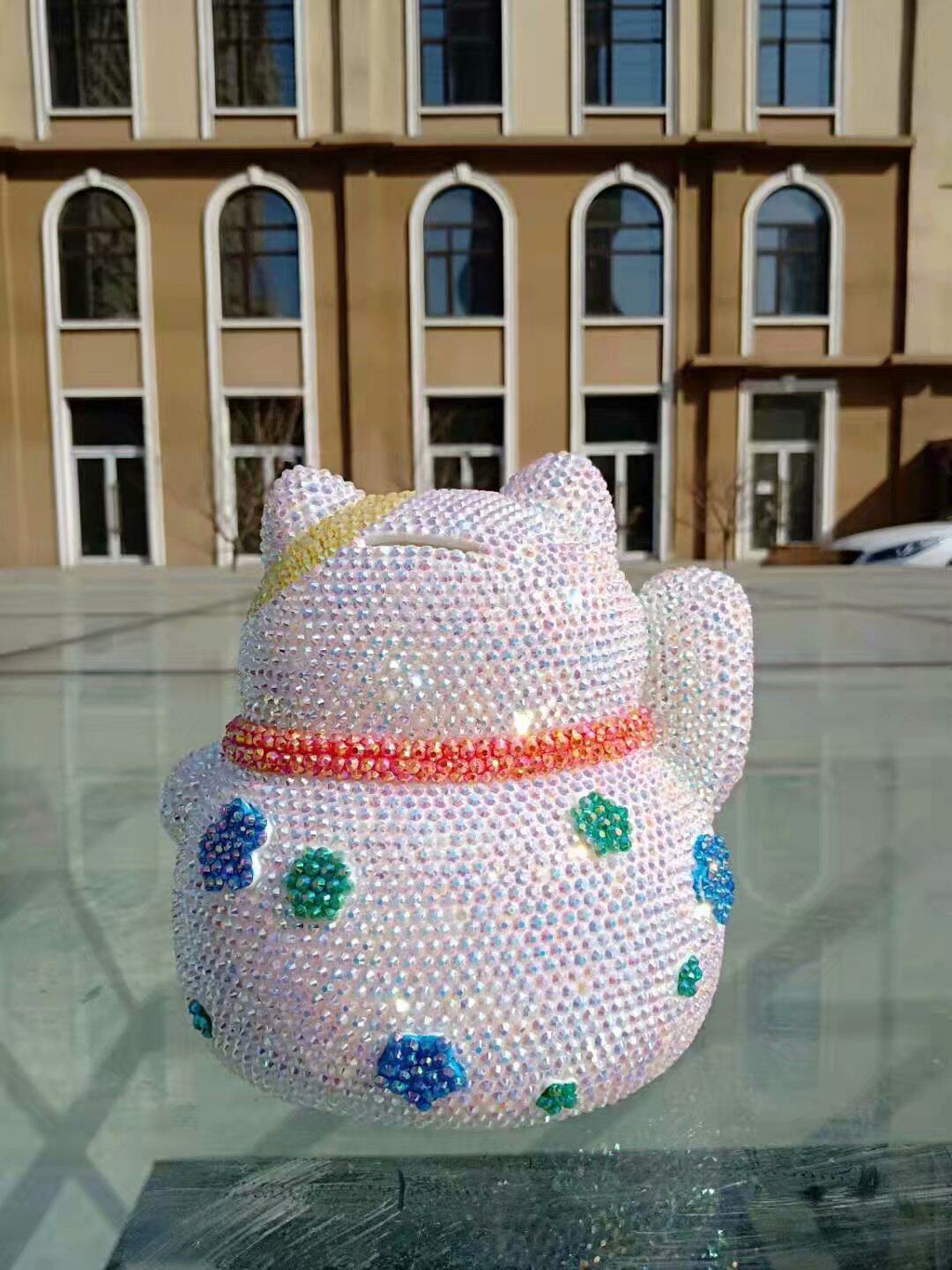 Sticking diamond lucky cat sticky drill piggy bank anti-fall coin coin change tank attracting wealth and treasure piggy bank store opening gift